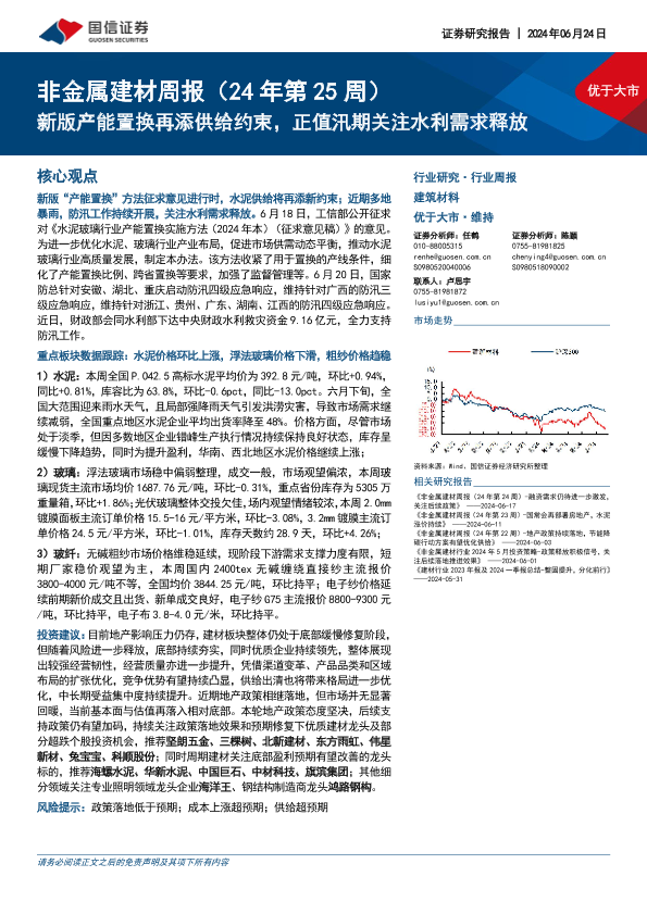 【国信证券】【20240624】非金属建材周报:新版产能置换再添供给约束,正值汛期关注水利需求释放-19页