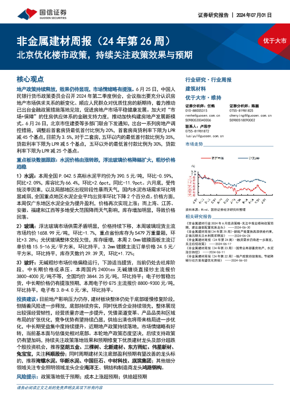 建筑材料 楼市政策 水泥价格 玻璃市场 非金属建材