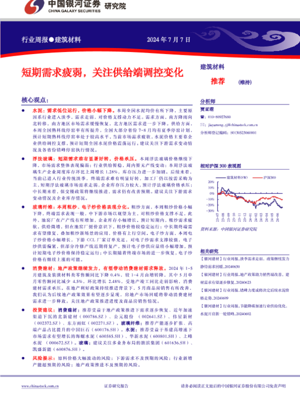 【银河证券】【20240707】建筑材料行业周报:短期需求疲弱,关注供给端调控变化-12页