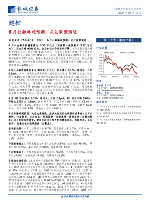 【长城证券】【20240713】6月社融略超预期,关注政策演进-17页