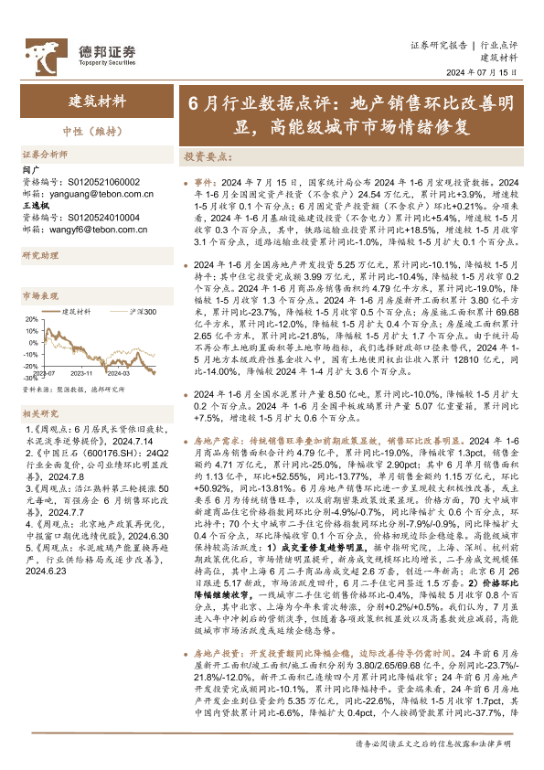 【德邦证券】【20240715】6月行业数据点评:地产销售环比改善明显,高能级城市市场情绪修复-10页