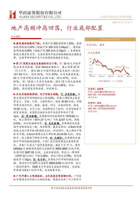 【华西证券】【20240714】建筑材料行业周报:地产高频冲高回落,行业底部配置-21页