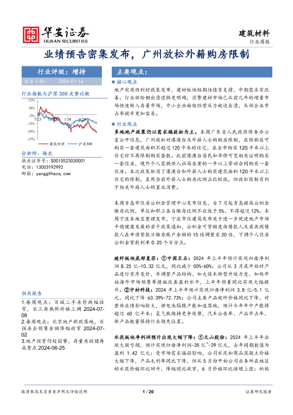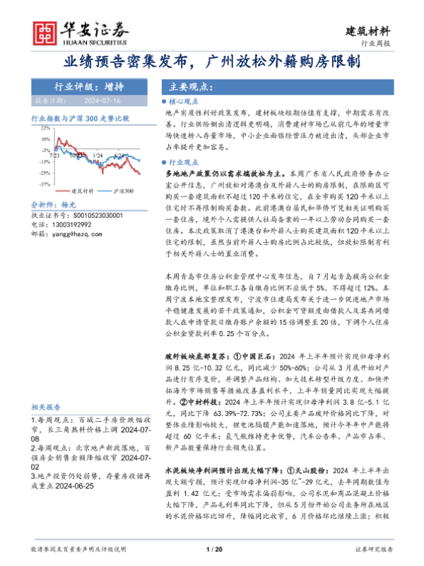 【华安证券】【20240716】建筑材料行业周报:业绩预告密集发布,广州放松外籍购房限制-20页