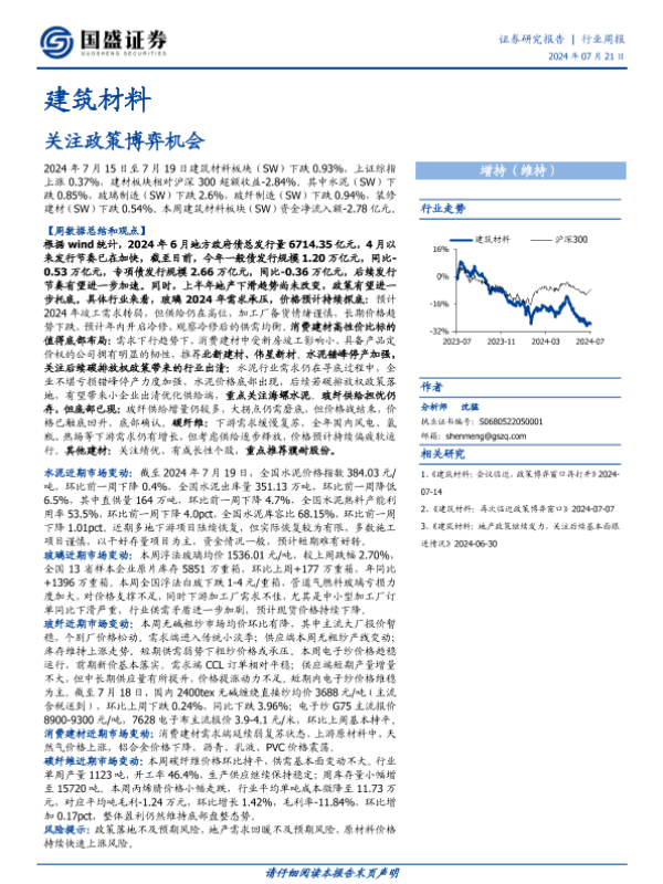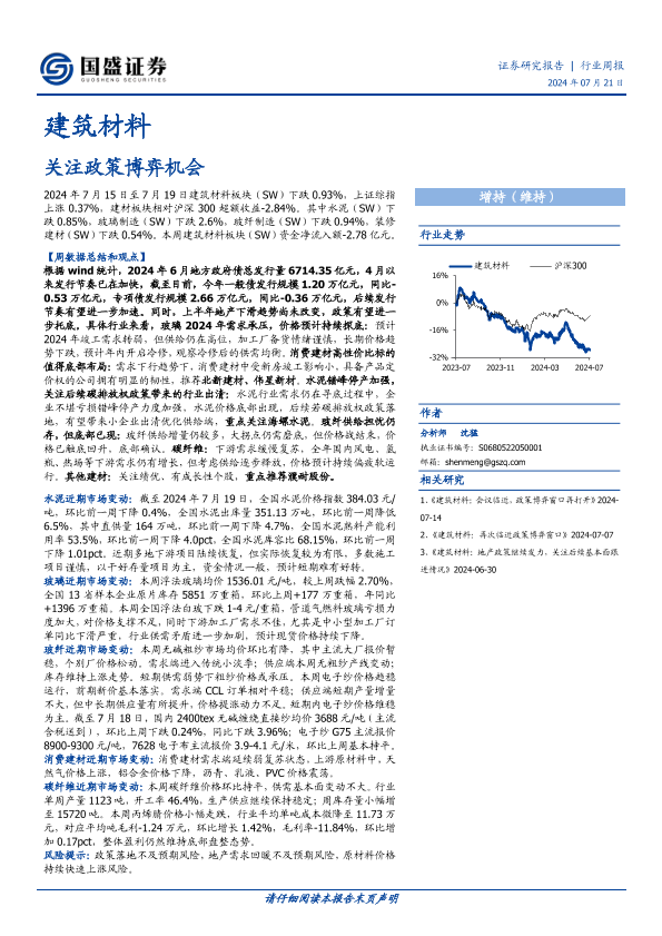 【国盛证券】【20240721】建筑材料行业周报:关注政策博弈机会-16页