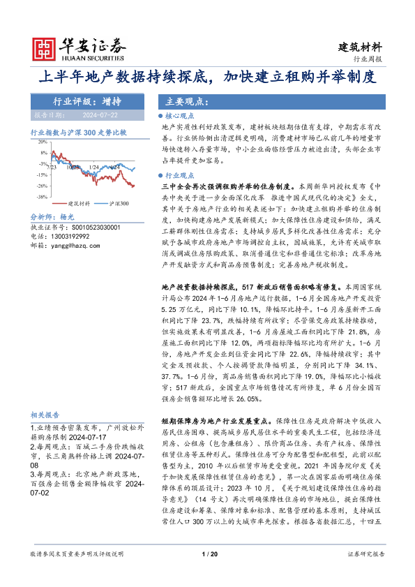 【华安证券】【20240722】建筑材料行业周报:上半年地产数据持续探底,加快建立租购并举制度-20页