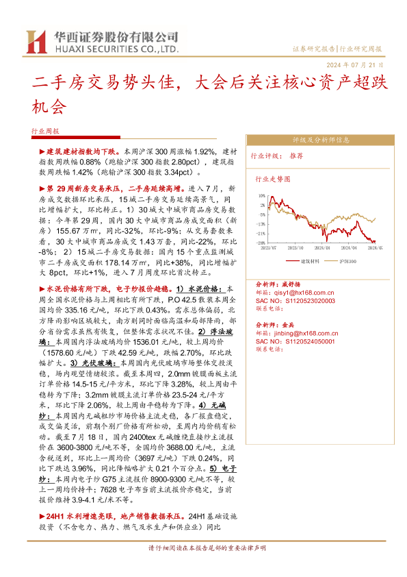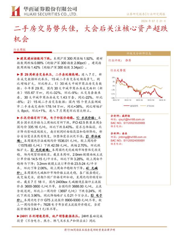 【华西证券】【20240721】建筑材料行业周报:二手房交易势头佳,大会后关注核心资产超跌机会-22页