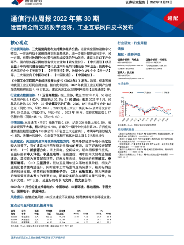 【国信证券】【20221113】通信行业周报2022年第30期:运营商全面支持数字经济,工业互联网白皮书发布-25页