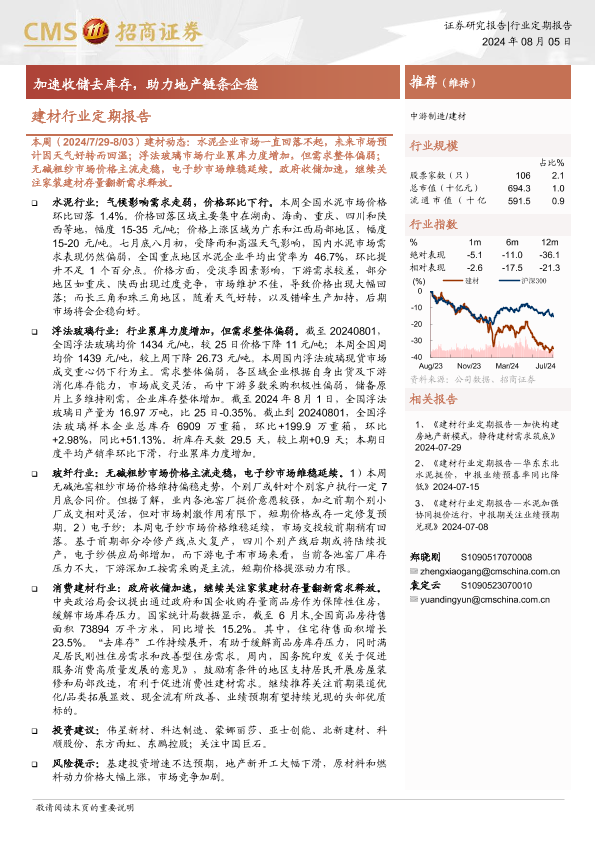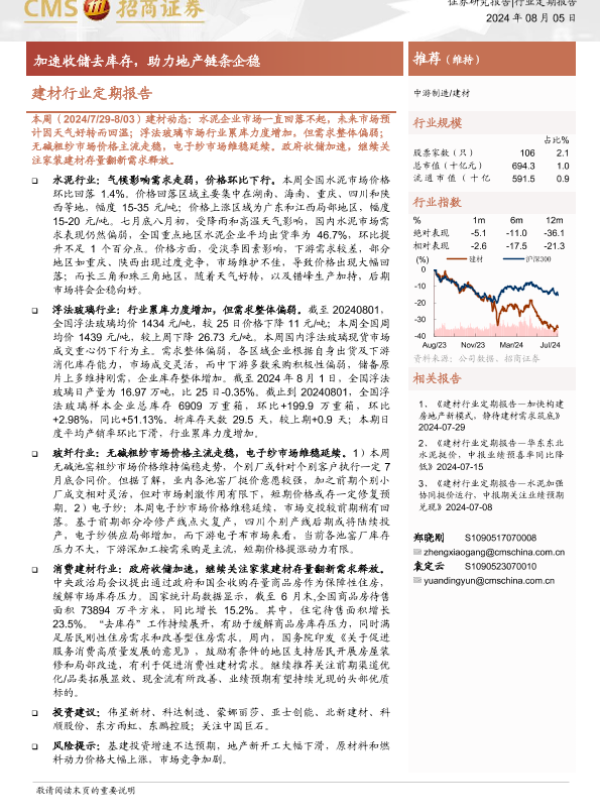 建材行业 政府收储 水泥市场 浮法玻璃 玻纤市场