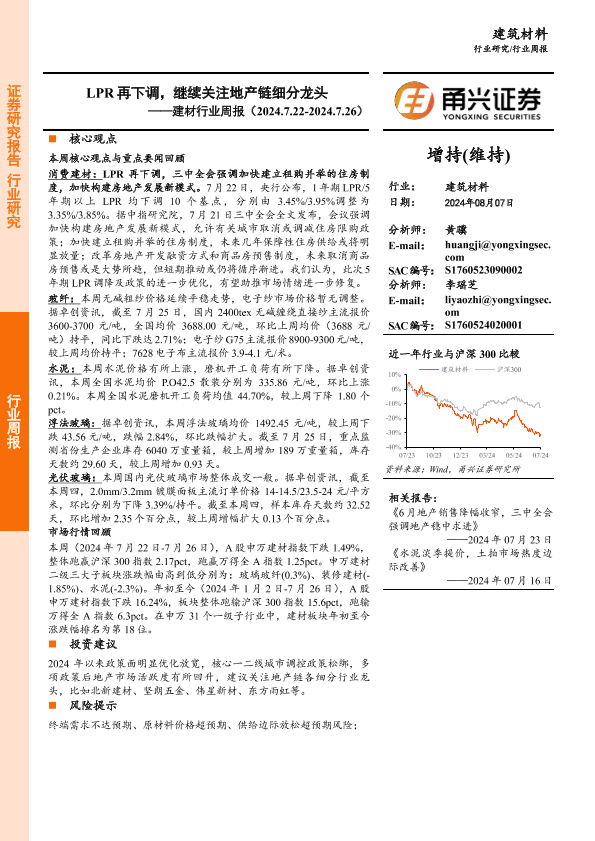 【甬兴证券】【20240807】建材行业周报:LPR再下调,继续关注地产链细分龙头-13页