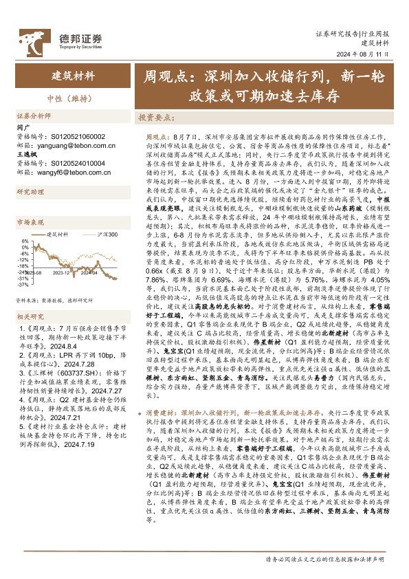【德邦证券】【20240811】深圳加入收储行列,新一轮政策或可期加速去库存-31页