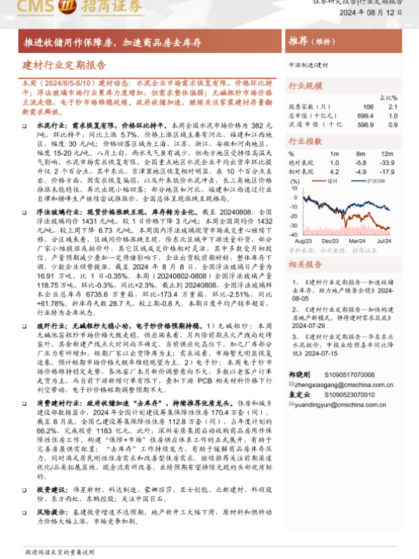 保障房 建材行业 水泥 浮法玻璃 玻纤