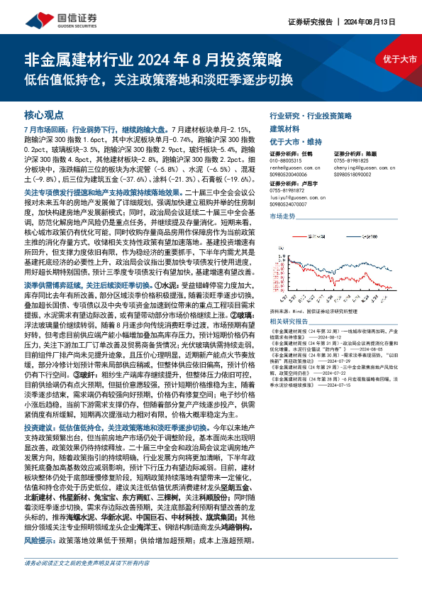 低估值 投资策略 政策分析 淡旺季切换 非金属建材