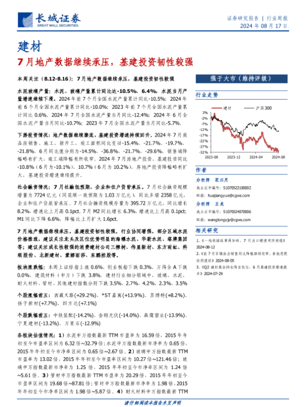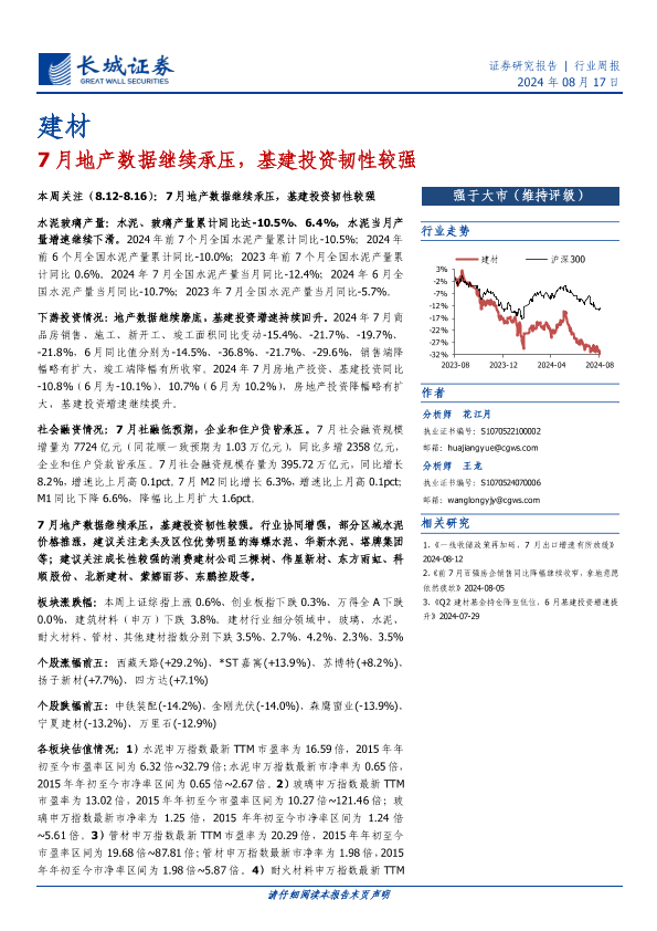 【长城证券】【20240817】7月地产数据继续承压,基建投资韧性较强-21页