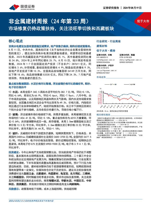 【国信证券】【20240819】非金属建材周报:市场修复仍待政策扶持,关注淡旺季切换和西藏板块-19页