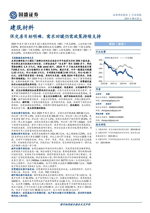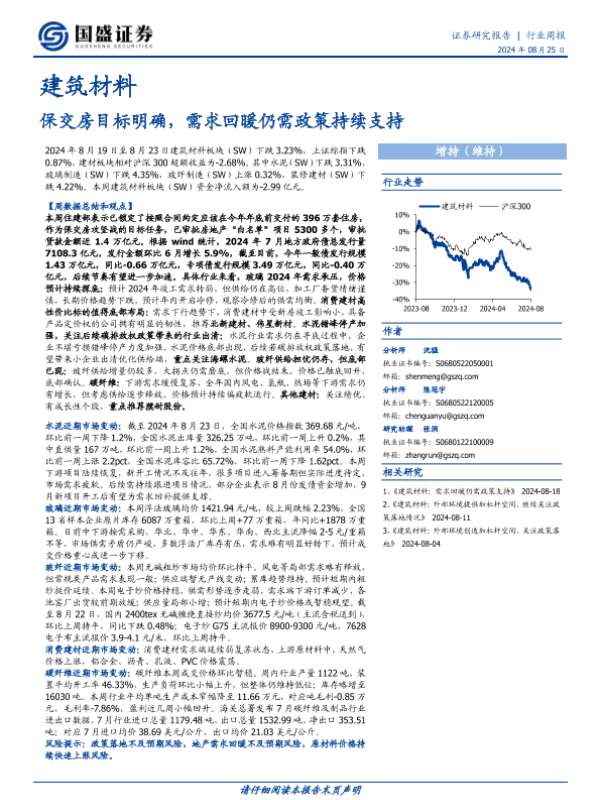 【国盛证券】【20240825】建筑材料行业周报:保交房目标明确,需求回暖仍需政策持续支持-18页