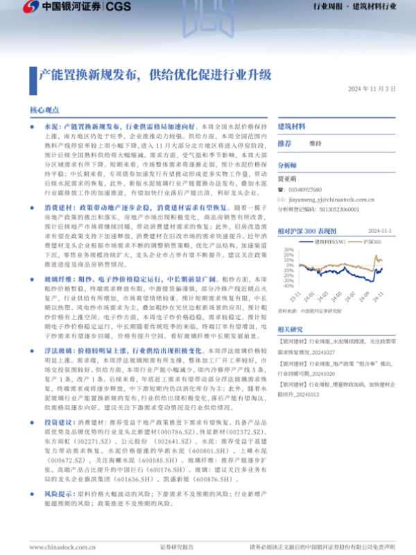 【银河证券】【20241103】建筑材料行业周报:产能置换新规发布,供给优化促进行业升级-14页