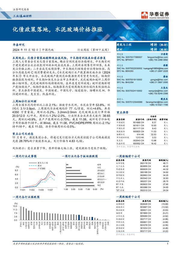 【华泰证券】【20241110】建筑与工程行业周报:化债政策落地,水泥玻璃价格推涨-16页