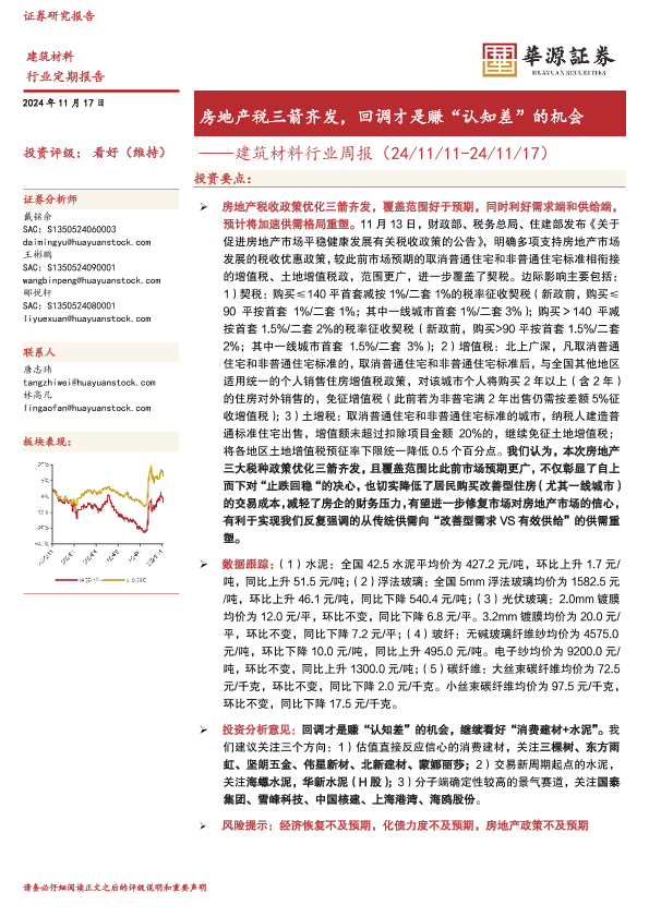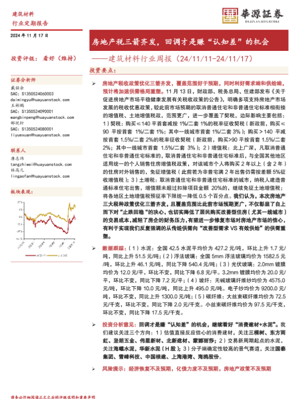【华源证券】【20241117】建筑材料行业周报:房地产税三箭齐发,回调才是赚“认知差”的机会-15页
