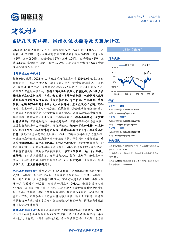 【国盛证券】【20241208】建筑材料行业周报:临近政策窗口期,继续关注收储等政策落地情况-20页
