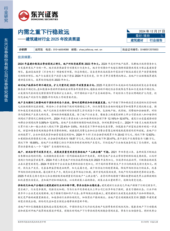 【东兴证券】【20241227】建筑建材行业2025年投资展望:内需之重下行稳致远-34页
