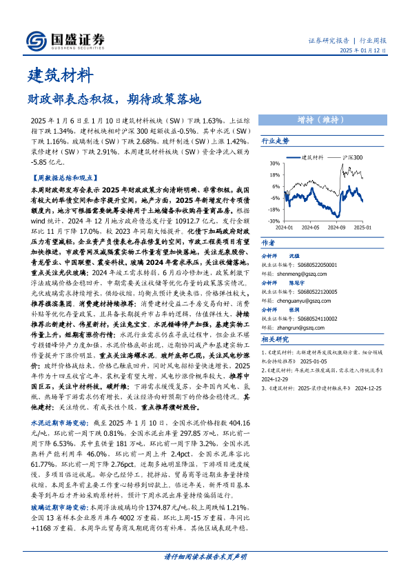 【国盛证券】【20250112】建筑材料行业周报:财政部表态积极,期待政策落地-18页