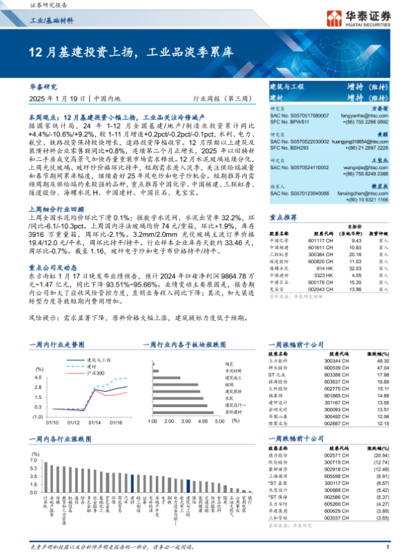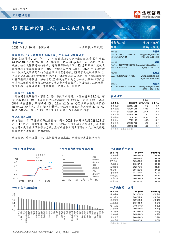 【华泰证券】【20250119】工业基础材料行业周报:12月基建投资上扬,工业品淡季累库-15页
