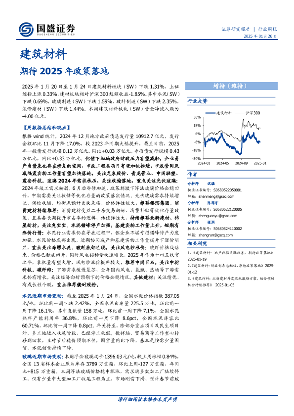 【国盛证券】【20250126】建筑材料行业周报:期待2025年政策落地-21页