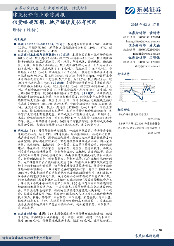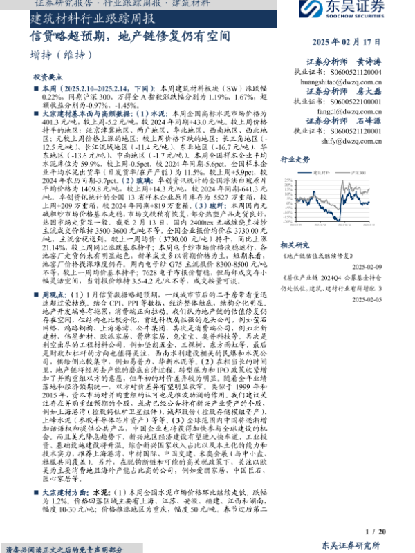 【东吴证券】【20250217】建筑材料行业跟踪周报:信贷略超预期,地产链修复仍有空间-20页
