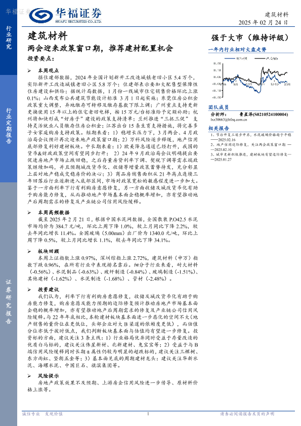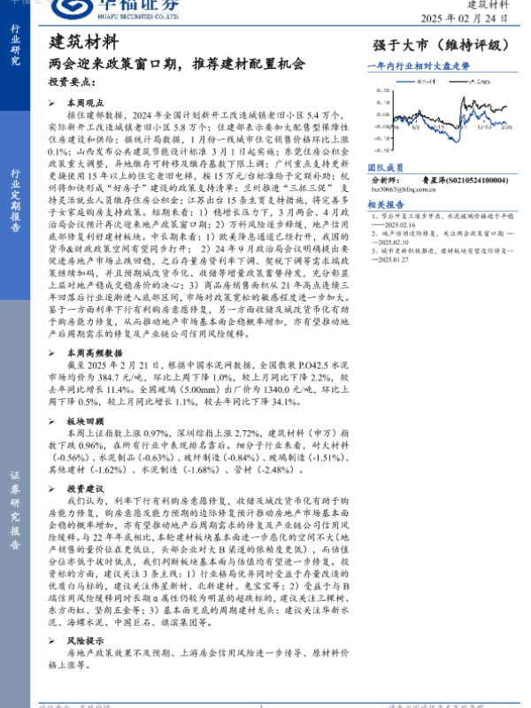 【华福证券】【20250224】建筑材料行业定期报告:两会迎来政策窗口期,推荐建材配置机会-11页