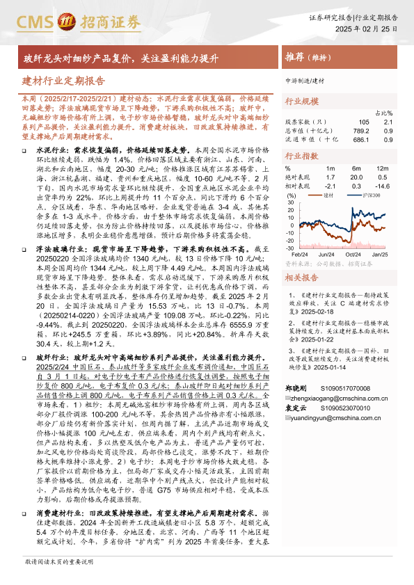 【海通证券】【20250225】建材行业定期报告:玻纤龙头对细纱产品复价,关注盈利能力提升-26页