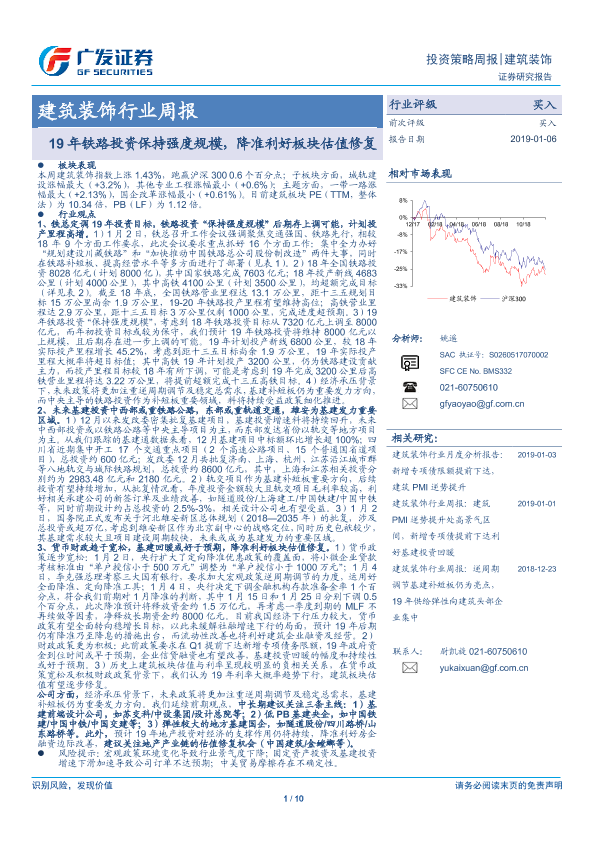 【广发证券】【20190106】19年铁路投资保持强度规模,降准利好板块估值修复-10页