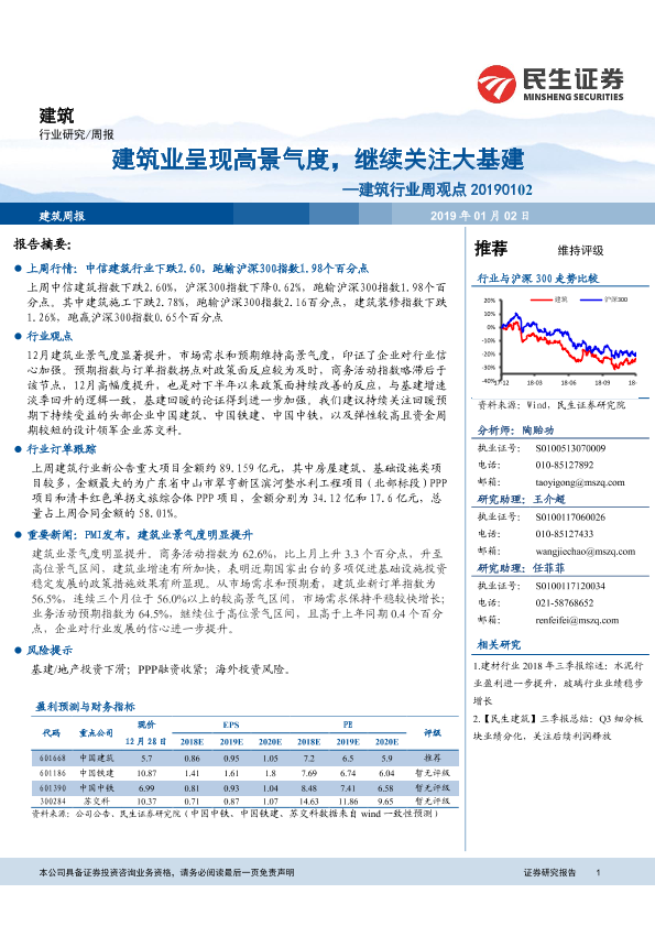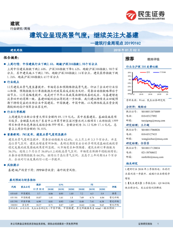 【民生证券】【20190102】建筑行业周观点:建筑业呈现高景气度,继续关注大基建-14页