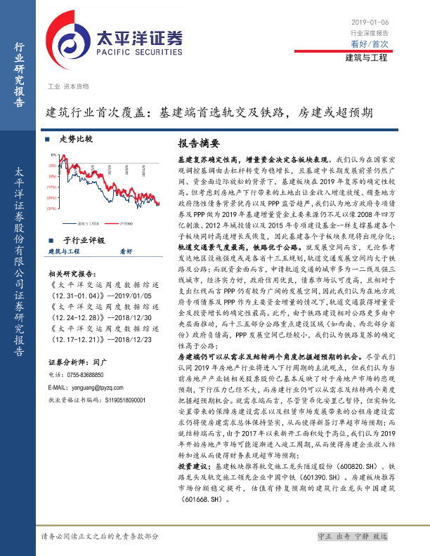 【太平洋证券】【20190106】建筑行业首次覆盖:基建端首选轨交及铁路,房建或超预期-30页