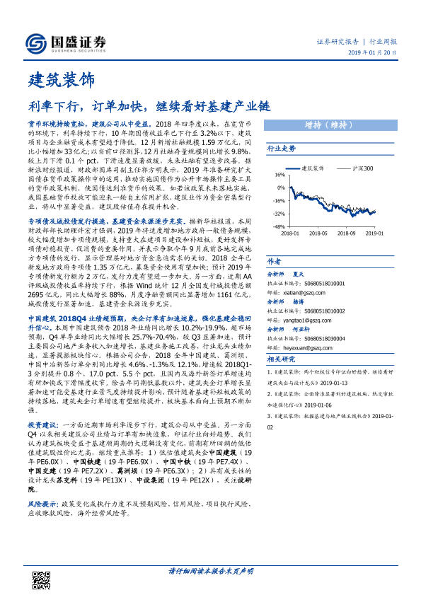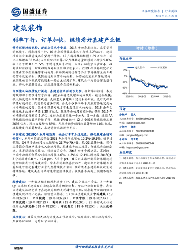 【国盛证券】【20190120】建筑装饰行业周报:利率下行,订单加快,继续看好基建产业链-3页