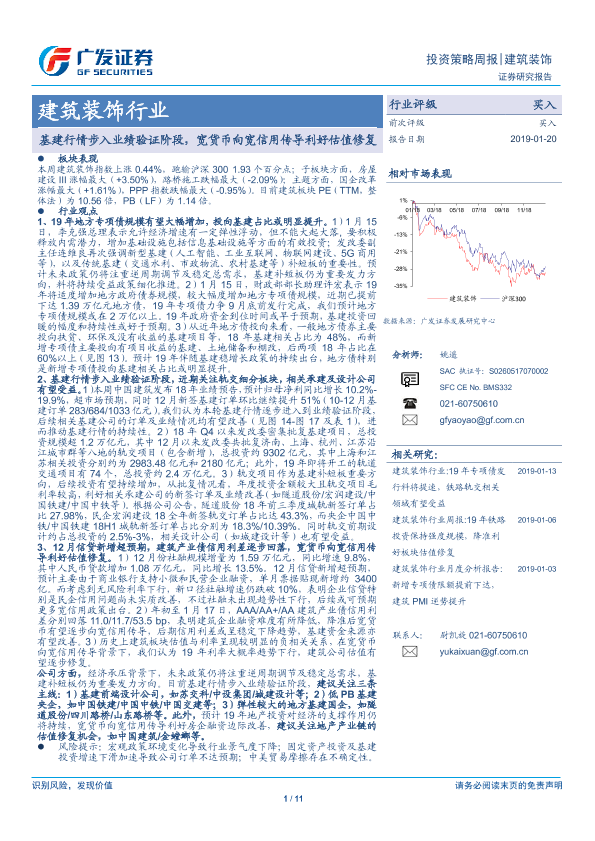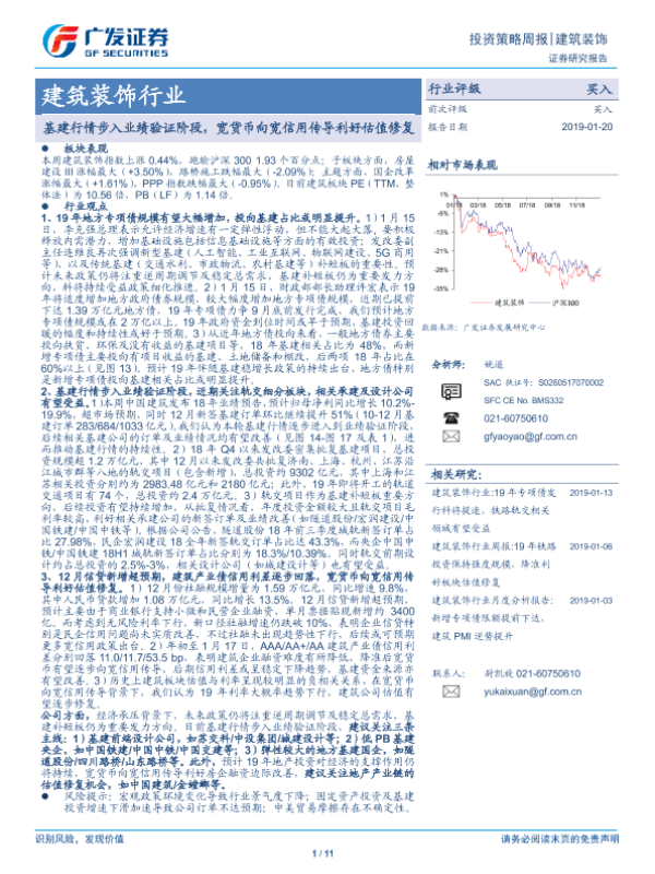 【广发证券】【20190120】建筑装饰行业投资策略周报:基建行情步入业绩验证阶段,宽货币向宽信用传导利好估值修复-11页