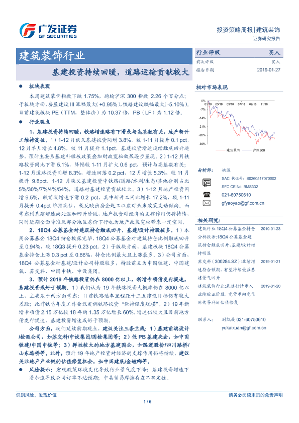 【广发证券】【20190127】建筑装饰行业投资策略周报:基建投资持续回暖,道路运输贡献较大-6页