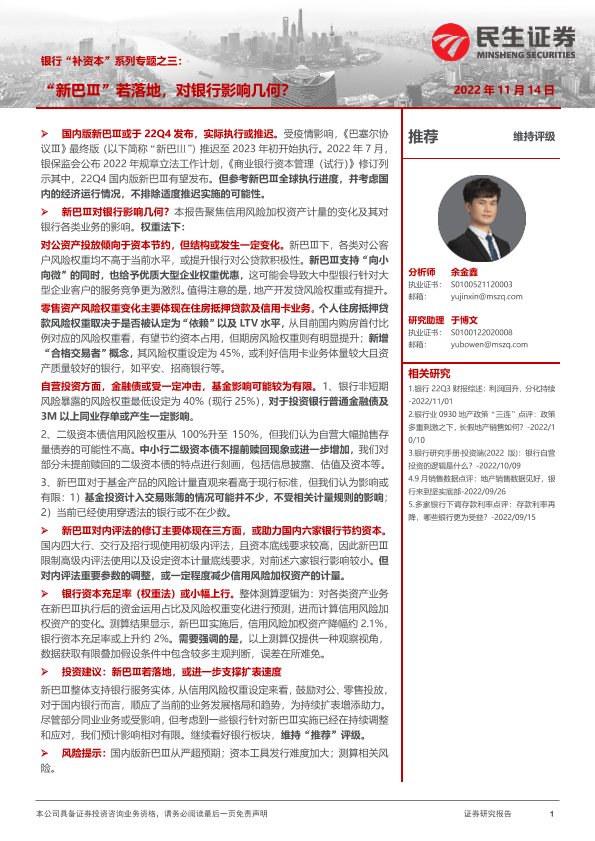 【民生证券】【20221114】银行“补资本”系列专题之三:“新巴Ⅲ”若落地,对银行影响几何?-17页