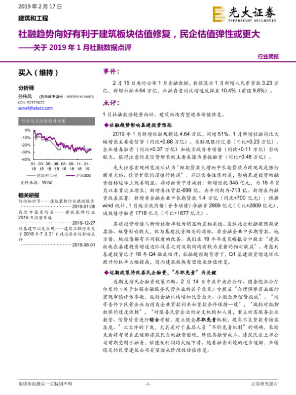 【光大证券】【20190217】建筑和工程行业简报:关于2019年1月社融数据点评-4页