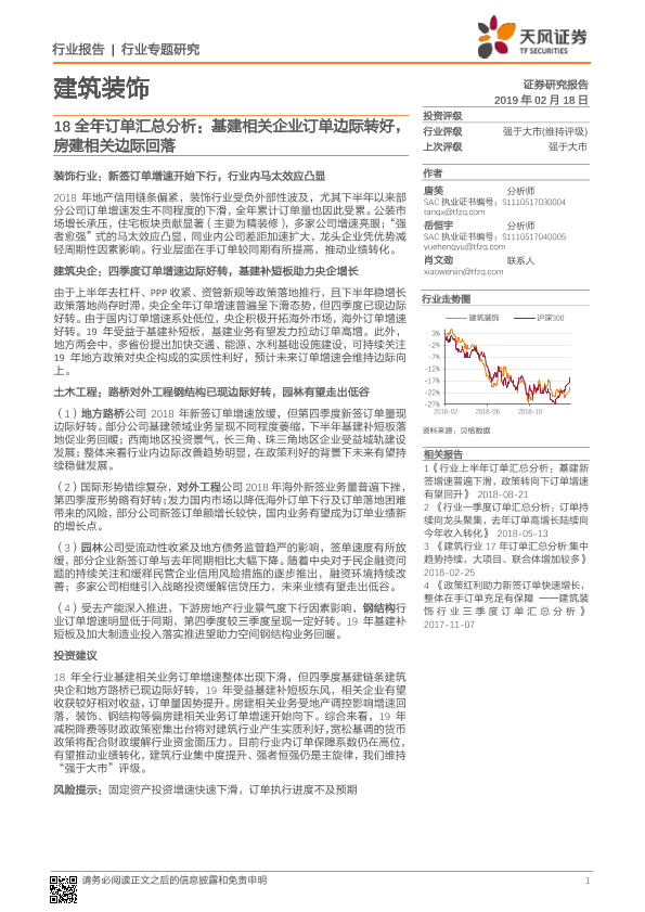 【天风证券】【20190218】18全年订单汇总分析:基建相关企业订单边际转好,房建相关边际回落-19页