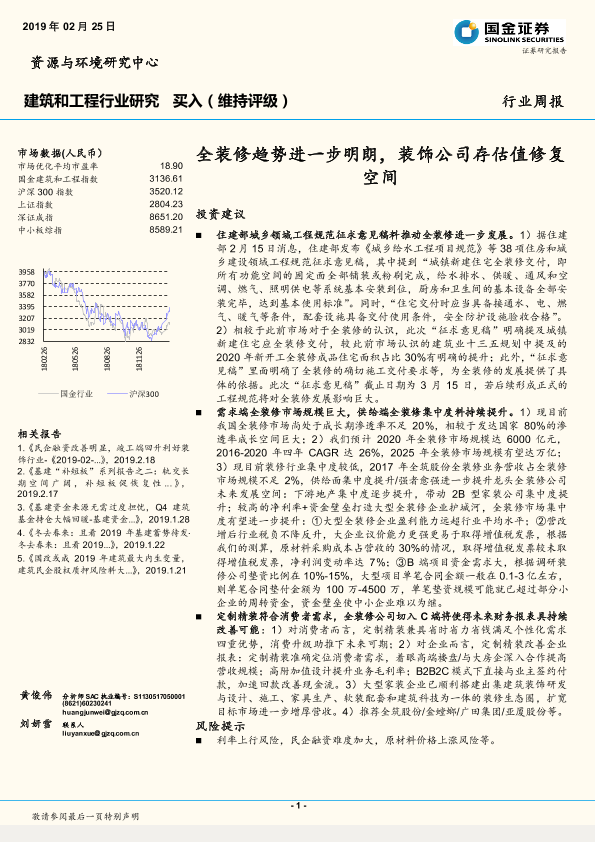 【国金证券】【20190225】建筑和工程行业周报:全装修趋势进一步明朗,装饰公司存估值修复空间-11页