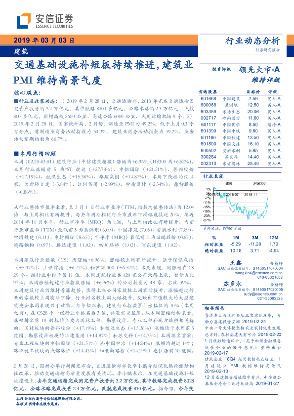 【安信证券】【20190303】建筑:交通基础设施补短板持续推进,建筑业PMI维持高景气度-10页