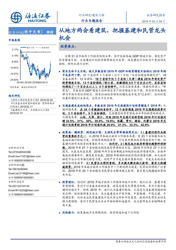 【海通证券】【20190304】从地方两会看建筑,把握基建和民营龙头机会-17页