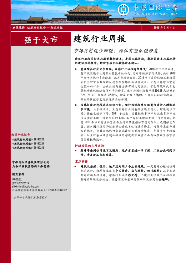 【中银证券】【20190304】建筑行业周报:市场行情逐步回暖,园林有望估值修复-15页