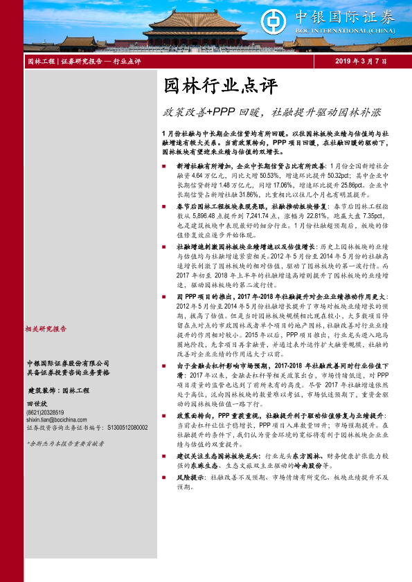 【中银证券】【20190307】园林行业点评:政策改善+PPP回暖,社融提升驱动园林补涨-6页