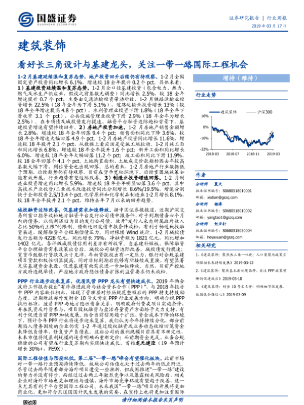 【国盛证券】【20190317】建筑装饰行业周报:看好长三角设计与基建龙头,关注一带一路国际工程机会-13页