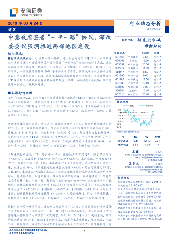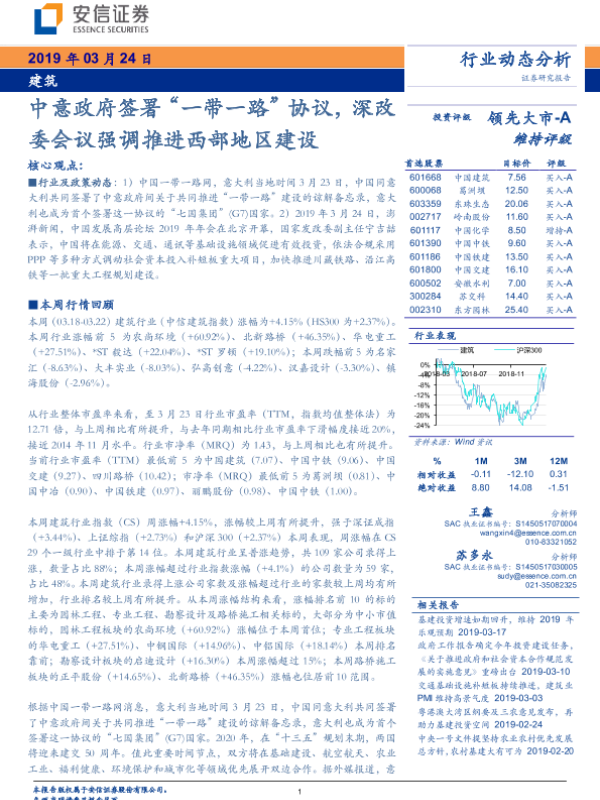 【安信证券】【20190324】建筑行业动态分析:中意政府签署“一带一路”协议,深改委会议强调推进西部地区建设-11页