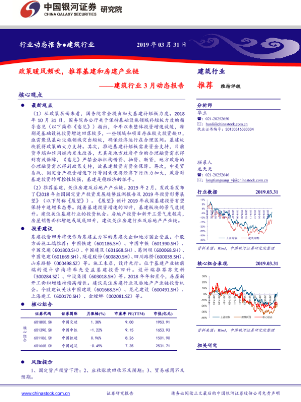 【银河证券】【20190331】建筑行业3月动态报告:政策暖风频吹,推荐基建和房建产业链-17页