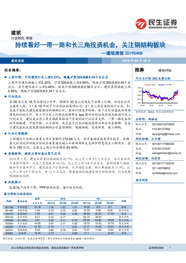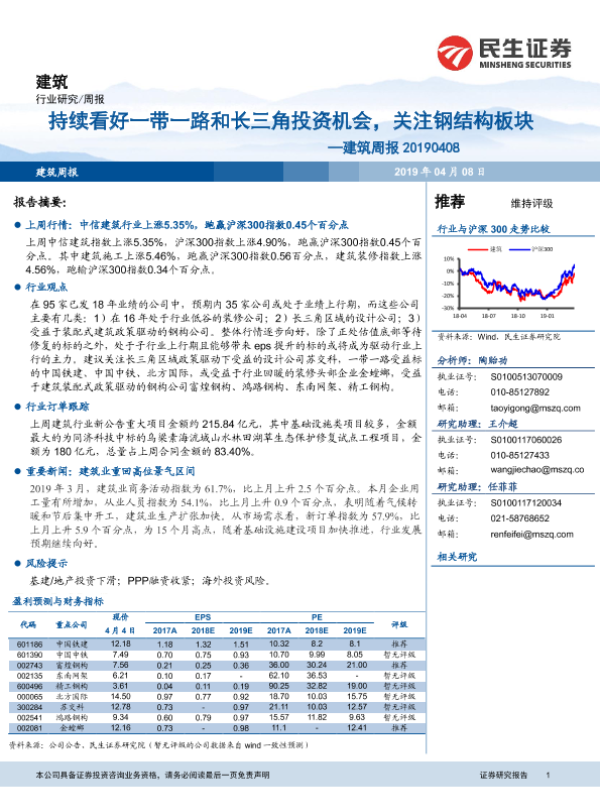 【民生证券】【20190408】持续看好一带一路和长三角投资机会,关注钢结构板块-13页
