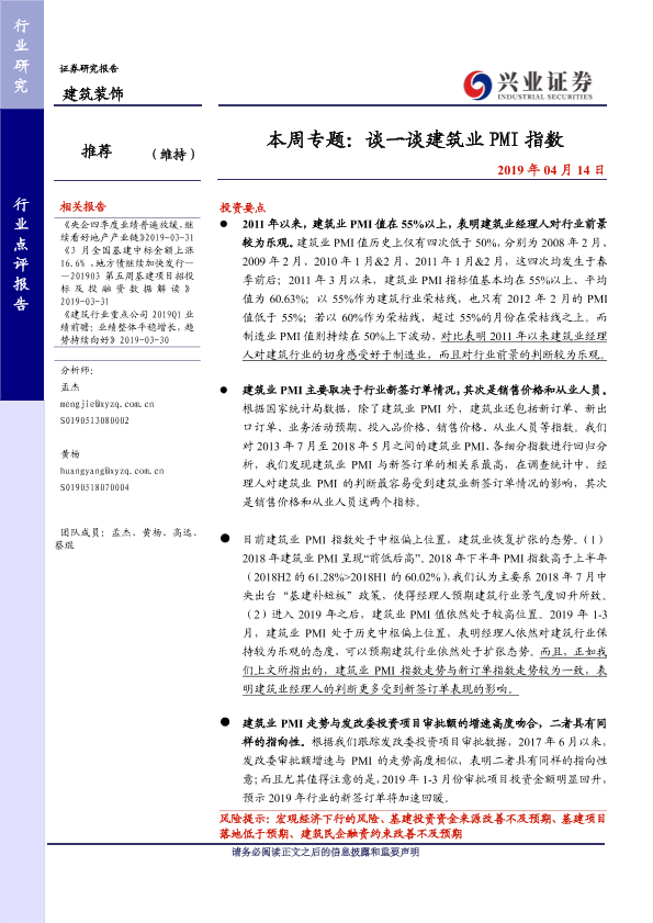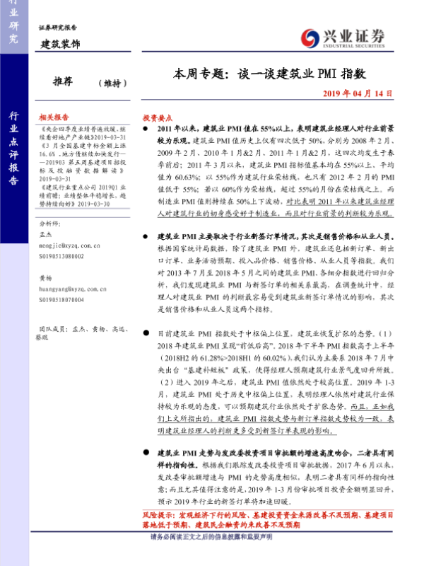 【兴业证券】【20190414】谈一谈建筑业PMI指数-6页