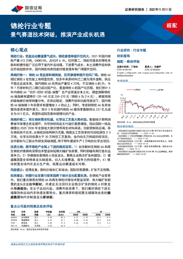 产业成长 再生纤维 技术突破 运动赛道 锦纶行业